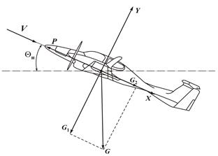 Набор высоты осуществляется после взлета до высоты круга (первоначальный набор высоты – до H = 400 м) и далее от высоты круга до высоты заданного эшелона полета по маршруту. Схема сил, действующих на самолет при наборе высоты, изображена на рис. 5.1.