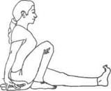 УЧИТЕСЬ удлинять поясничную область туловища, прогибая дорсальный отдел позвоночника. d) Джану ширшасана - из последнего положения с), выдохните, расширьте локти в стороны, вытяните туловище дальше вперед; - поместите лоб на левую голень; - вдохните, отпустите руки, поднимите грудную клетку и перейдите в Уттхита джапу ширшасану (положение сидя), освободите правую ногу и сядьте в Дандасану; - повторите в другую сторону. УЧИТЕСЬ прогибать спину и наклоняться вперед, сохраняя вытяжение, чтобы спина не выступала наружу, как купол. ПРИМЕЧАНИE: Опуская голову на вытянутую ногу, нужно больше вытягивать противоположную сторону туловища. a) Уттхита трианга мукхаикапада пасчимоттанасана b) Урдхва хаста трианга мукхаикапада пасчимоттанасана c) Урдхва мукха трианга мукхаикапада пасчимотпта-насана—прогиб d) Трианга мукхаикапада пасчимоттанасана a) Уттхита трианга мукхаикапада пасчимоттанасана - из Дандасвны согните правую ногу и поместите ее рядом с боковой поверхностью правого таза, подошва стопы направлена вверх; положение бедра, голени и стопы сходно с Вирасаной (не садитесь на стопу); - удостоверьтесь, что оба бедра параллельны друг другу; - держите левую ногу вытянутой прямо по всей линии на полу; - держите ладони с двух сторон от таза.