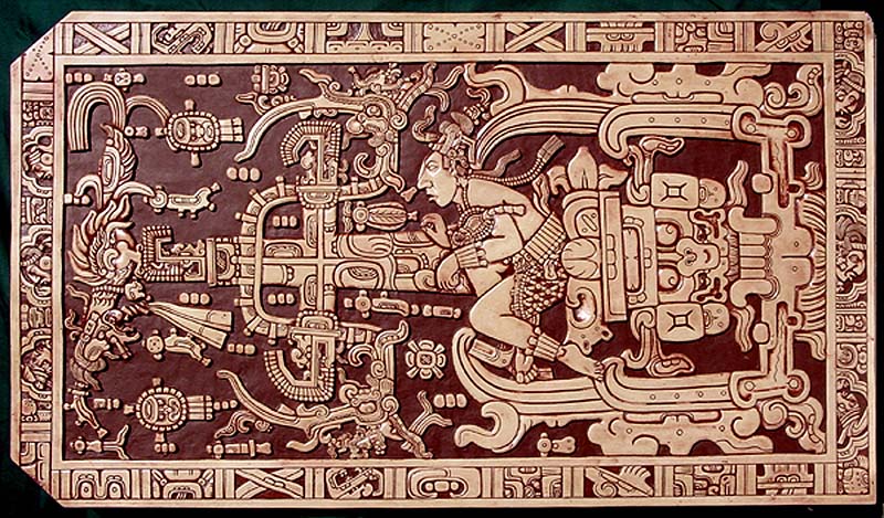 Вокруг обнаруженного Русом погребения разгорелись нешуточные споры. Среди историков они сводились в основном к определению возраста находки и статуса усопшего. Однако информация об этом открытии уже давно вышла за рамки узкого круга специалистов. Тайна саркофага в Храме Надписей начала будоражить широкие слои населения, и попытки найти разгадку этой тайны зажили самостоятельной жизнью. Практически вне зависимости от дискуссии внутри самого археологического сообщества, которая на самом деле только подхлестывала энтузиазм исследователей, начались дискуссии сторонников и противников совсем других версий. Так итальянец Пинотти, а также некоторые японские и российские исследователи высказали предположение о том, что, если на плите изображен реальный человек, то и окружают его не мистические символы, а реальные предметы. Дальнейшая проработка этой версии привела их к идее, что на плите изображен детальный чертеж космического корабля в разрезе, а в его нижней части даже видна струя реактивных газов. Американский же авиаконструктор Джон Сэндерсон заложил репродукцию рисунка на плите в компьютер, преобразовал плоское изображение в объемное и получил кабину космического корабля с приборным пультом и двигательной установкой… И вот уже полсотни лет не утихает спор о том, кто же все-таки изображен на знаменитой плите: правитель майя, мифологический персонаж или пилот космического корабля. По моему мнению, все изображения майя настолько сильно стилизованы, настолько насыщены различными дополнительными (чаще всего совершенно аллегоричными) деталями, что делать какие-то строгие выводы на основании них, просто некорректно. Тут нужно опираться на что-то другое.