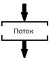 2. Поток отображает изменение чего-либо во времени (скорость, темп). ПРИМЕР: скорость исчерпания ресурсов, денежные расходы и доходы и т.д. Для изображения потоков используется открытый с двух сторон прямоугольник.