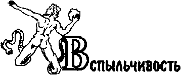 Человеческие натуры можно разделить на две категории: легковоспламеняющиеся и тугоплавкие. Душевной чертой, разделяющей их, является вспыльчивость. Вспыльчивость есть мера, обозначающая легкость воспламенения натуры. Чем вспыльчивее человек, тем скорее поддается он на провокации бытия: тем проще маленькой искре непонимания, недоразумения, недоумения или досады возжечь костер пылающих страстей. Степень вспыльчивости -- это показатель уровня человеческой страстности, готовой излиться в ответ на сущий пустяк. У вспыльчивости немало форм и обличий. Глядя на них, редкий человек догадается, что перед ним всего лишь явления вспыльчивости. Таков энтузиазм, особенно массовый, заражающий людей в обществе. Легкая охватываемость одним настроением, увлеченность общим порывом, загорание единым стремлением -- эти черты энтузиазма выдают его породненность со вспыльчивостью. Однако не только пылкость энтузиаста, но и увлеченность творца, самоотверженность героя -- все это различные лики натуры, в основе которой лежит вспыльчивость. Вспыльчивый всегда блуждает. Он есть огонь, уносимый ветром. Легко выходя из себя, он лишается самого надежного укрытия каждого из нас -- собственного "я". Неприкаянный, он долго не чувствует ущерба от своей бездомности. Утрата своего "я" возмещается для вспыльчивого увлеченностью ситуацией. Сливаясь с неодолимым движением стихийных сил, он испытывает, должно быть, редкостное наслаждение и восторг. Вспыльчивость дарит человеку минуты совершенного упоения. Нет такого воздействия, которое могло бы остановить порыв вспыльчивости. И не потому нет, что вспыльчивый безволен и теряет контроль над собой. Нет, его манит неведомое здравым людям наслаждение, он предвкушает упоение своего слияния со стихиями, он заворожен образом этой безраздельной, безграничной и коварной свободы. Вспыльчивый, утрачивая самообладание и волю конечного человеческого существа, на краткий, но сладостный миг приобщается к высшей воле, беспредельным светом