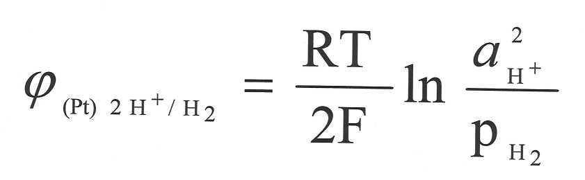 При стандартной температуре уравнение Нернста для водородного электрода имеет вид: