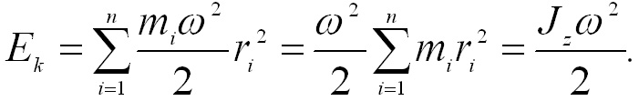 Кинетическая энергия вращающегося тела есть сумма кинетических энергий его точек, т.е.