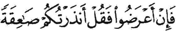 Если же они отвернутся, то скажи: «Я предостерегаю вас о разрушительном вопле» [71] [Аль Фуссылат (41):13]