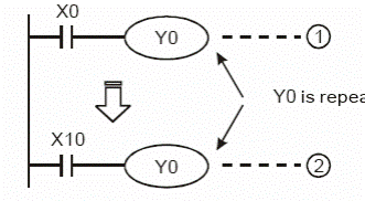 · Входные реле Х считывают состояния внешних физических устройств (кнопки, переключатели, контакты реле и др.) непосредственно подключенных к входным клеммам ПЛК. · Каждый входной контакт Х может использоваться в программе неограниченное число раз. · Выходные реле Y управляют состоянием физических выходных контактов ПЛК (релейных или транзисторных), а следовательно и устройствами нагрузки (лампы, ТЭНы, катушки реле и др.) непосредственно подключенными к выходным клеммам ПЛК. · Каждый выходной контакт Y может использоваться в программе неограниченное число раз, но выходную катушку Y рекомендуется использовать в программе не более одного раза, т.к. при повторении катушки Y, состояние выхода будет определяться последним Y в скане.