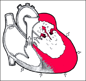 Определяется регургитация крови из левого желудочка в левое предсердие и эксцентрическая гипертрофия этих камер сердца