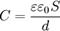 Характеристики конденсаторів Основною характеристикою конденсатора є його електрична ємність (точніше номінальна ємність), яка визначає накопичений заряд. Типові значення ємності конденсаторів складають від одиниць пікофарад до сотень мікрофарад. Але існують конденсатори з ємністю десятків фарад. Ємність плоского конденсатора, яка складається з двох паралельних металічних пластин площиною S кожна, які розташовані на відстані d одна від одної, в системі СІ виражена формулою Для отримання великих ємностей конденсатори з'єднують паралельно. Загальна ємність батареї паралельно з'єднаних конденсаторів дорівнює сумі ємностей всіх конденсаторів, які входять у батарею.
