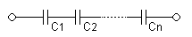 Ця ємність завжди менша мінімальної ємності конденсатора, який входить в батарею. Але при послідовному з'єднанні зменшується загроза пробою конденсаторів, оскільки на кожний конденсатор надходить лише частина різниці потенціалів джерела напруги.