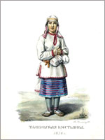 Начнём мы наше путешествие в удивительный мир богатейшей русской культуры с национального костюма, поскольку, как известно, «встречают по одёжке». Ведь именно по одежде составляется первое впечатление о человеке – кто они и что он – даже в наше, достаточно унифицированное время. Что уж говорить о народном костюме, который есть отражение души народа, его представление о прекрасном, его сконцентрированная культура и история, копившаяся и совершенствовавшаяся на протяжении многих веков. К сожалению этот пласт нашего наследия не остался без вмешательства тех, кто на протяжении, как минимум, трёхсот последних лет последовательно работал на её уничтожение. Досталось и русскому народному костюму. После того, как Пётр I вернулся из турне по Западной Европы (1697 по 1698 гг.), он (вернее его двойник) издал в 1699 г. Указ, в котором запретил ношение народного костюма для всех, кроме крестьян, монахов, священников и дьячков. Известен такой факт, что со всех въезжающих в город в русской одежде и бороде брали пошлину: 40 копеек с пешего и 2 рубля с конного (Г. П. Успенский. «Опыт повествования о древностях русских». Харьков, 1818 стр. 59-60). С тех пор русское крестьянство осталось единственным хранителем народной истории, культуры и представлении русского народа о красоте. В настоящее время исследователи делят всё многообразие русского народного костюма (мы будем говорить о женском костюме) на две большие группы. Первая группа – южнорусский женский костюм или понёвный комплекс – самый древний. Его самой главной деталью была понёва – прабабушка современной юбки. Хотя этот стиль одежды появился у славянских народов раньше других, но с 14 века он начал постепенно вытесняться другой одеждой, и к 17 веку понёва стала принадлежностью только южнорусского костюма. Более того, к 19 веку даже в южных губерниях понёву носили лишь замужние крестьянские женщины. В понёвный комплекс одежды входят: рубаха с косыми паликами (плечевыми детальками), понёва, передник, нагрудник (мог быть двух типов: вроде знакомого нам халата с длинным рукавом и застёжкой спереди, или надевающийся через голову, с коротким рукавом), сорока (для женщин) или повязка (для девушек), пояс, обувь (кожаная или лыковая).