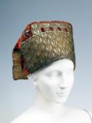 Кокошник. Курская губ. 18 в. Кокошник. Псковская губ. 18 в. Кокошник. Олонецкая губ. 18 в. Кокошник. Коллекция Кокошник. Коллекция Однорогий кокошник. Псковская губ. 18 в. Однорогий кокошник. Костромская губ. 18 в. Однорогий кокошник. Владимирская губ. 18 в. Однорогий кокошник. Владимирская губ. 18 в. Однорогий кокошник. Коллекция Бруклинского Музея Существовало несколько видов и форм кокошников: однорогий, двурогий, конусообразный, цилиндрический, седлообразный. Были кокошники в виде циллиндрической шапки с конусообразным дном, с плоским овальным верхом, выступом надо лбом, лопастями над ушами и пришитым сзади твёрдым прямоугольным подзатыльником. Позатылник – это ткань на твёрдой основе, уложенная сзади, чтобы прикрывать волосы на затылке, а, соответственно, налобник – расшитая полоска, которая закрывала лоб, кончики ушей и виски.