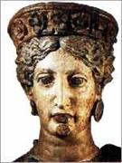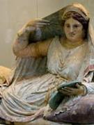 Кокошник. Коллекция Бруклинского музея Да и сомнительно, что такой древний предмет мог произойти просто от сходства с гребнем петуха и быть просто головным убором. А тот факт, что он очень древний, не вызывает никакого сомнения, потому что кокошник, в частности, и славянские женские головные уборы можно найти в древней древности у разных народов – от древних иберов Иберийского полуострова (ныне Испания и Португалия), этрусков, скифов, греков и римлян, до средневековых королев. Ниже представлены образцы головных уборов этрусских женщин: изображение на саркофаге этрусской женщины, имя которой западные этрускологи «прочитали» как Сейанти Хануниа Тлеснаса (Seianti Hanunia Tlesnasa), 150 г. до н.э. Кьюзи (Chiusi), Тоскана; статуя этрусской богини Уни – 5 в. до н.э. из обожжённой глины, раскрашенной красками в храме Лоскасато в античном этрусском городе Фалерии (Lo Scasato, Falerii); женщина в кокошнике на антефиксе этрусского храма Уни (Juno Sospita) в Lanuvium, 6-5 вв до н.э. (Антефикс – это вертикальный блок, который завершал черепичное покрытие крыши); и голова этрусской женщины в натуральную величину, Лувр.