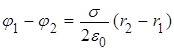 Далее воспользуемся формулой напряженности поля заряженной плоскости