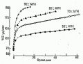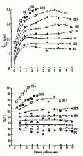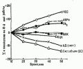 При выполнении упражнений любой аэробной мощности на протяжении второго периода (с истинно, условно или ложно устойчивым состоянием, определяемым по скорости потребления О2) многие ведущие физиологические показатели медленно изменяются (рис. 13). Эти относительно медленные функциональные изменения получили название "дрейфа". Чем больше мощность упражнения, тем выше скорость "дрейфа" функциональных показателей (рис. 14), и наоборот, чем ниже мощность упражнения (чем оно продолжительнее), тем ниже скорость "дрейфа".