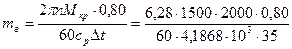 Сколько воды необходимо подводить к тормозу за 1 ч, если крутящий момент на валу Мкр= 2000 Дж, частота вращения n= 1500 об/мин, а допустимое повышение температуры воды К.Теплоемкость воды ср принять равной 4,1868 кДж/(кг·К).