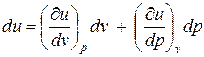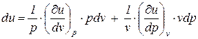 Удельная внутренняя энергия для простых тел может быть представлена в виде функции любых двух независимых параметров состояния. Примем, что u =и (p, v). Тогда дифференциал внутренней энергии запишется в следующем виде: