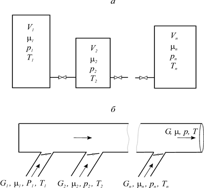 При образовании смесей на практике встречаются две основные схемы смешения: при постоянном объеме (V = idem, рис. 18 а) и постоянном давлении (p = idem, рис. 18 б).