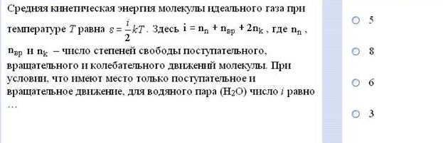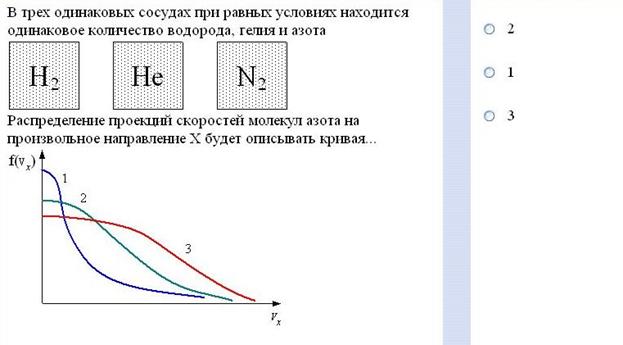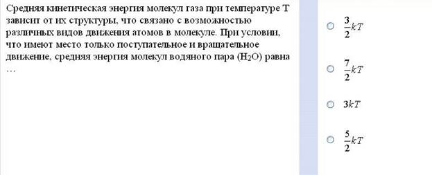 Ответ: Поступательных степеней свободы всегда 3, вращательных для линейной молекулы азота – 2. Итого – 5 степеней, тогда Правильный ответ: 2 Задание №4