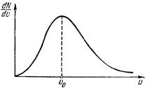 Выражение, стоящее в этой формуле перед du, представляет собой число молекул, отнесенное к единичному интервалу значений скорости. Как функция от u оно имеет вид, изображенный на рисунке. Оно равно нулю при u = 0, достигает максимума при