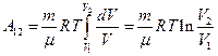 Выражения (105.4) и (105.6) дают работу, совершаемую идеальным газом при любом политропическом процессе, кроме изотермического (n = 1). Работа идеального газа при изотермическом процессе вычисляется после представления давления в формуле (105.1) через другие величины в соответствии с уравнением состояния. В результате Т можно вынести за знак интеграла, поскольку она постоянна: