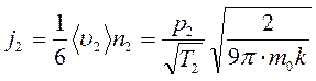 Если стенки одной части сосуда поддерживать при температуре Т1, а другой – при температуре Т2, то плотность потока молекул из первой части сосуда во вторую и наоборот можно определить по формулам