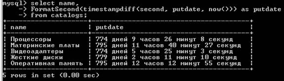 Ниже приводится пример запроса, позволяющего узнать, сколько времени прошло с момента последней правки каждого из элементов каталога, и вывести это время в соответствии с форматом функции FormatSecond() из приведенного ранее примера.