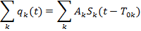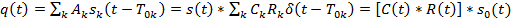 Если считать, что форма импульсов Sk(t), отраженных от k-тых границ одинакова, а величина их амплитуды Ak определяется величиной суммарного воздействия геометрического расхождения, поглощения и рассеяния энергии равного Ск и величиной распределения R(t) коэффициента отражения Rk,т.е. Ak=Ck*Rk, то будем иметь