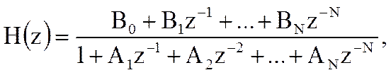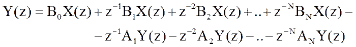 При четном N фильтр состоит из N/2 звеньев второго порядка, при нечетном N фильтр состоит из одного звена первого порядка и (N-1)/2 звеньев второго порядка. Системная функция звена первого порядка отличается от системной функции звена второго порядка тем, что коэффициенты B2 и A2 равны нулю.