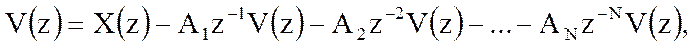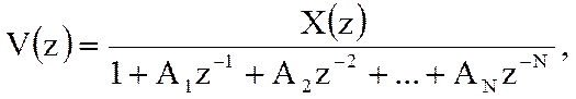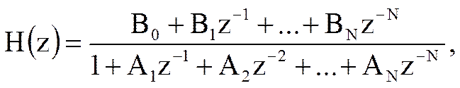 Системная функция цифрового фильтра в общем случае представляет собой дробно-рациональную функцию. Полином числителя описывает нерекурсивную часть фильтра, а полином знаменателя – рекурсивную. Чтобы найти нули системной функции, нужно полином числителя приравнять нулю и найти корни полученного уравнения. Чтобы найти полюсы системной функции, нужно полином знаменателя приравнять нулю и найти корни полученного уравнения. Знаки перед коэффициентами A в выражении для системной функции и в разностном уравнении противоположны.