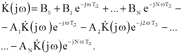 Сравнивая последнее соотношение с выражением для системной функции цифрового фильтра, можно сформулировать правило определения комплексного коэффициента передачи при известной системной функции фильтра: для нахождения комплексного коэффициента передачи нужно в выражении для системной функции заменить z на