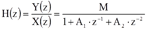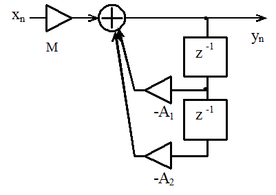Цифровой резонатор представляет собой звено второго порядка, у которого коэффициенты системной функции B1 и B2 равны нулю.