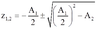 Определим полюсы системной функции. Для этого приравняем знаменатель нулю и найдем корни полученного квадратного уравнения
