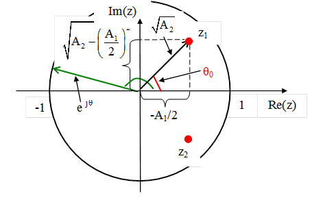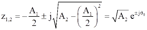 Поэтому полюсы системной функции являются комплексно-сопряженными и определяются следующим соотношением