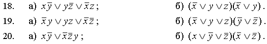 Задачи соответствующие вариантам В заданиях 1–10 требуется привести данные выражения к ДНФ, пользуясь правилами де Моргана. Если возможно, сократить ДНФ, используя свойство поглощения и правило Блейка: В заданиях 11–20 требуется: в задаче а) написать по данной ДНФ полином Жегалкина, от ДНФ перейти к КНФ, а затем перейти к СКНФ; в задаче б) перейти от данной КНФ к ДНФ, а затем перейти к СДНФ.