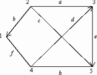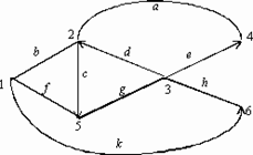 В задачах 37–46 требуется составить структурную матрицу для данного орграфа (или графа) и, методами булевой алгебры, найти все пути Pij из вершины i в вершину j, затем найти все сечения Sij между этими вершинами. В данном задании (чтобы исключить возможные неясности графического рисунка) указываются все ориентированные ребра, причем запись (2–4) означает, что 2 вершина связана с 4-й, а обратной связи нет. Напомним, что для нахождения путей из вершины i в вершину j нужно раскрывать минор структурной матрицы Мji (вычеркивать из структурной матрицы строчку с номером j и столбец с номером i). Сечения же находятся отрицанием путей (конъюнкция меняется на дизъюнкцию и наоборот).52. Дан орграф. Имеется 2 ориентированных ребра: (2–3) и (2–4); i= 4, j= 6. 37. Дан орграф. Имеется 2 ориентированных ребра: (2–5) и (3–4); i= 3, j= 1.