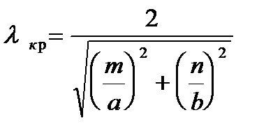 Рис. 1.4. Диаграмма типов волн в прямоугольном волноводе при a>2b Если длина волны Если выбрать длину волны генератора в пределах Если Из всех типов волн максимальную критическую длину имеет волна 3. Мощность, передаваемая по волноводу. Среднюю за период мощность, переносимую по волноводу волной