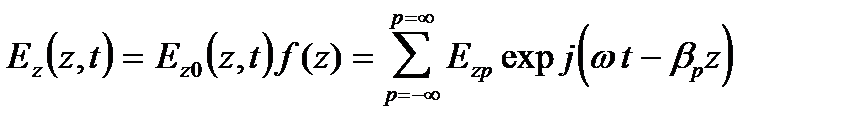 Рис.3.48.Картина поля в замедляющей системе Картина периодического поля бегущей волны в ЗС типа «гребенка» Из выражения (3.3) видно, что поле периодической ЗС представляет собой сумму бесконечного числа бегущих волн с одинаковой частотой w, различающихся коэффициентами фазы