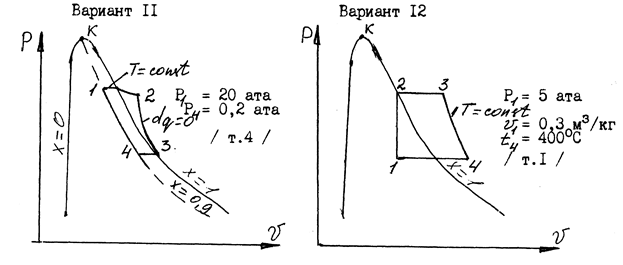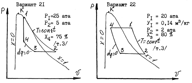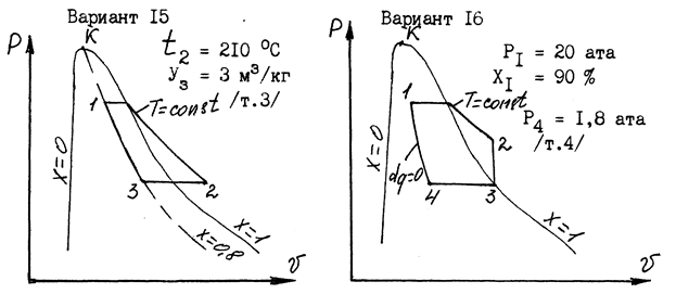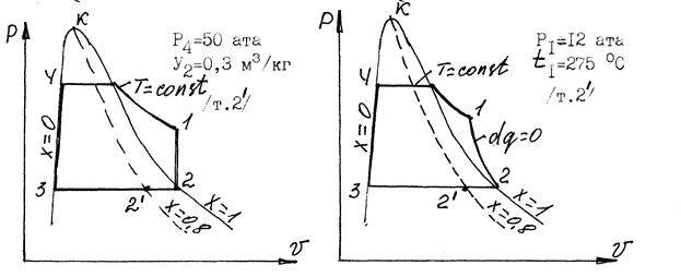 Циклы даны в Р,v- диаграмме без учета масштаба