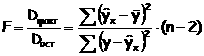 Определение дисперсии на одну степень свободы приводит дисперсии к сравнимому виду. Сопоставляя факторную и остаточную дисперсии в расчете на одну степень свободы, получим величину F-критерия Фишера: