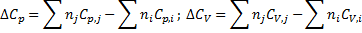 Для учета зависимости теплоемкости от температуры в этих формулах используют средние значения теплоемкости в данном интервале температур веществ, участвующих в реакции (берутся из справочника). Для более точных расчетов в случае протекания реакции при большой разнице температур необходимо использовать температурную зависимость теплоемкости