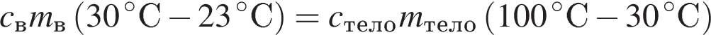Решение. Поскольку теплоемкостью калориметра можно пренебречь, все тепло, выделяющееся при остывании тела идет на нагрев воды