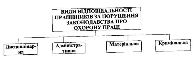 праці (на підземних роботах, підіймання І переміщення речей, маса яких перевищує граничні норми). Забороняється застосування праці неповнолітніх на важких роботах і роботах із шкідливими або небезпечними умовами праці. Охорона праці інвалідів (організовувати навчання, перекваліфікацію і працевлаштування інвалідів). Залучення інвалідів до надурочних робіт і робіт у нічний час ЙРЧ їх згоди не допускається. Обов'язок працівника 1. Виконувати вимоги про охорону праці. 2. Знати і виконувати вимоги нормативних актів про охорону праці. 3. Додержуватися зобов'язань щодо охорони праці. 4. Проходити попередні та періодичні медичні огляди. 5. Співробітничати з власником у справі організації безпечних і нешкідливих умов. Відповідальність працівників за порушення законодавства про охорону праці Винні працівники притягуються до дисциплінарної, адміністративної, матеріальної та кримінальної відповідальності згідно з чинним законодавством України.