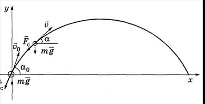 Математическая модель движения пули Время движения пули разобьем на небольшие интервалы и будем считать, что на протяжении каждого из них скорость и сила сопротивления остаются постоянными. По истечении каждого интервала изменяются скорость движения, сила сопротивления, угол направления скорости и силы, т. е. эти величины, изменяются скачкообразно. На рисунке показаны два дискретных положения пули.