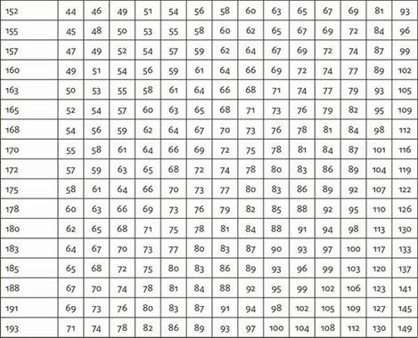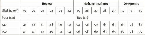 Возможно, вы заметили, что сейчас больше людей вокруг вас, чем несколько лет назад, имеют лишний вес. Возможно, вы бываете в школах, детских садах и на детских площадках и видели, что у многих детей есть проблемы с лишним весом и что они не могут пробежать шести метров, не запыхавшись. В наши дни сложно не приметить борьбы, которая ведется против лишнего веса. Откройте любую газету или журнал, включите радио или телевизор – и вы узнаете, что у многих людей проблемы с весом. Что означают термины «избыточный вес» и «ожирение»? Стандартный показатель размера тела – это индекс массы тела (ИМТ). Он отражает соотношение веса (кг) к росту (м2). Согласно большинству официальных стандартов, при избыточном весе значение ИМТ превышает 25, а при ожирении показатель ИМТ более 30. Одна и та же шкала используется как для мужчин, так и для женщин. Вы сами можете определить свой ИМТ при помощи табл. 6.1.