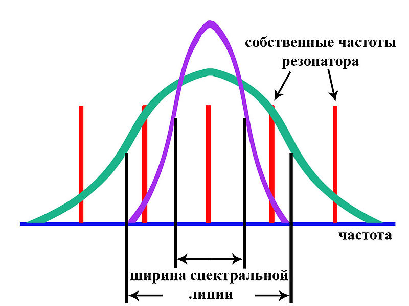 Зеркала лазера не только обеспечивают существование положительной обратной связи, но и работают как резонатор, поддерживая одни генерируемые лазером моды (тип колебаний), соответствующие стоячим волнам данного резонатора, и подавляя другие. Если на оптической длине L резонатора укладывается целое число полуволн n: