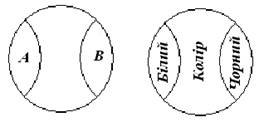 А і В - рівнозначні поняття, а круг їх спільний обсяг. Наприклад: “засновник науки логіки” і “Вчитель Олександра Македонського” або “Київ” і “столиця України”. Відношення перехрещення існує між поняттями, обсяги яких збігаються частково, неповністю.