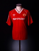 Гг. — домашняя форма Сезон 1986/87 ознаменовался не только приходом Алекса Фергюсона, но и новым комплектом формы. «Адидас» вернулся к размещению знаменитых трех белых полос на рукавах. Полосы имели черное окаймление. Фактически единственным основным отличием от формы 1982 года был блестящий материал, на котором красовалась эмблема Adidas и диагональные полосы, которые проявлялись при определенном освещении. Эта футболка одевалась с белыми плиссированными шортами с тремя красными полосками с каждой стороны и небольшой красной эмблемой дьявола. Гетры были черными с эмблемой Adidas на белой полосе по середине.