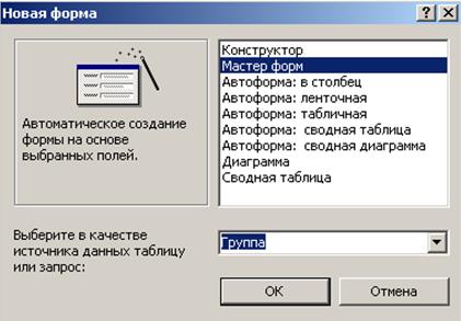 После завершения создания многотабличной формы, ее можно использовать для одновременной загрузки и работы с данными двух таблиц ГРУППА и СТУДЕНТ.