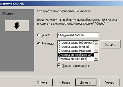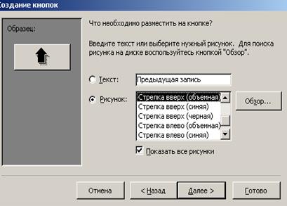 Для осуществления удобной навигации по записям таблицы, создадим соответствующие кнопки управления в основной части многотабличной формы (к следующей записи, к предыдущей записи, закрыть форму), рис.3.18.