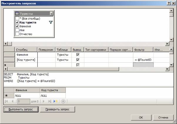 Рис. 73. Построитель запросов (Query Builder) При попытке выполнить хранимую процедуру в окно сообщений будет выведена информация о том, что данная процедура требует значение параметра. Для записи процедуры в базу данных достаточно ее сохранить. Происходит синхронизация с базой данных, и процедура "proc_vs1" появляется в списке. Двойной щелчок открывает ее для редактирования, причем заголовок имеет следующий вид: ALTER PROCEDURE dbo.proc_vs1 Оператор ALTER позволяет производить действия (редактирование) с уже имеющимся объектом базы данных.