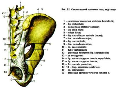 Подвздошно-поясничные связки: верхние — от подвздошной кости к поперечному отростку L4 нижние — от подвздошной кости к поперечному отростку L5
